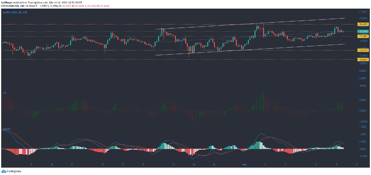 Sushiswap (SUSHI), trend yönü belirgin olmayan bir düzlemden çıkıp yükselen bir grafik çizdi. Genellikle artış trendi oluşumunda yukarı yönlü fiyat kırılması görülürken, SUSHI’nin önümüzdeki seanslarda destek ve direnç seviyeleri arasında konsolide olması bekleniyor. Müthiş Osilatör indikatörünün satış bölgesine geçtiği belirtiliyor. MACD ise düşüş trendini gösterdi. Bu teknik göstergeler, SUSHI’nin rekor seviyelere ulaşmasında boğaların önündeki engellerden biri olarak değerlendirebiliriz. SUSHI, haberimizin yazıldığı sırada 18 dolar seviyelerinde işem görüyor.