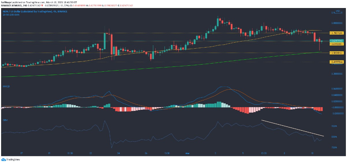 Nem (XEM), güçlü bir satış baskısı görüyor. MACD indikatörü Signal çizgisinin oldukça altında hareket etti. Histogram, ayıların hakim olduğu bir düşüş trendini işaret etti. Son birkaç seansta yoğun olarak satış baskısı görüldü. Bununla beraber OBV indikatörü düşük seviyeler oluşturdu. Tüm gözler XEM’in 0.58 dolar seviyesini koruma hattına çevrildi. XEM bu seviyeyi koruyamazsa 0.50 dolar seviyesine ani bir geri çekilme yaşayabilir.