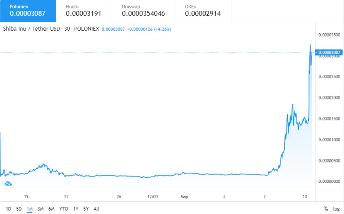Listelemenin ardından “Dogecoin katili” %100’ün üzerinde yükseldi. Shiba, bu yazının kaleme alındığı an itibarıyla 0.00003087 dolardan işlem görüyor. Popüler token, tam bir ay öncesinde 0.000000067 dolardı. Kripto para piyasasının son çılgınlığı Shiba Inu, gündemi domine etmeyi başardı.