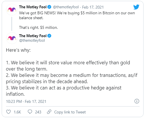Motley Fool’un BTC Yatırımı