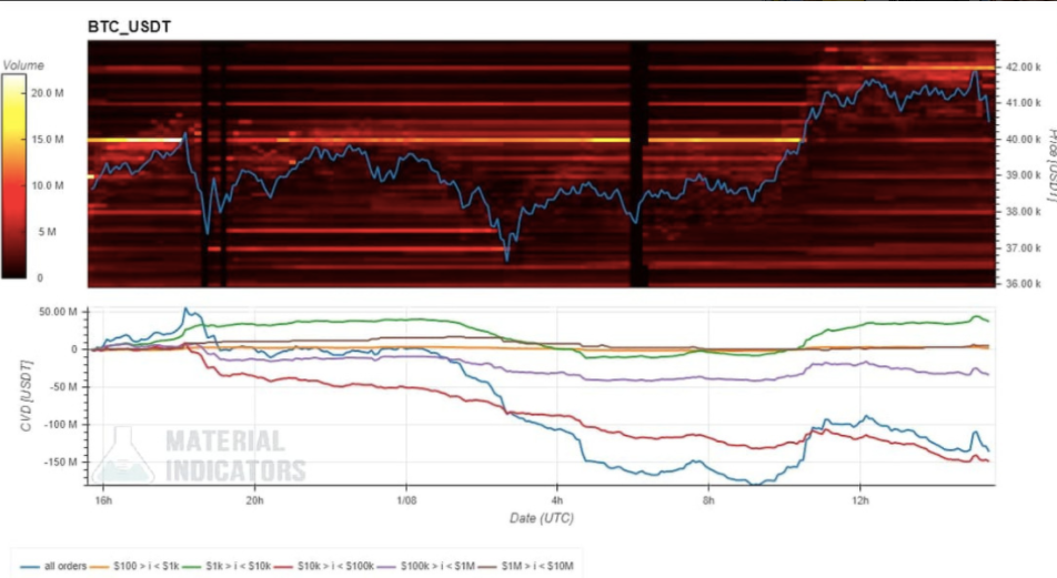 Bir kripto analiz şirketi olan Material Indicators’daki analistlere göre, 7 Ocak’ta Bitcoin 40.000 dolara ulaştığında balinalar hızlı bir satış faaliyeti göstermeye başladı. Bu da birkaç saat içinde 36.000 dolarlık alana hızlı bir şekilde %10’luk düşüş yaşanmasını sağladı.