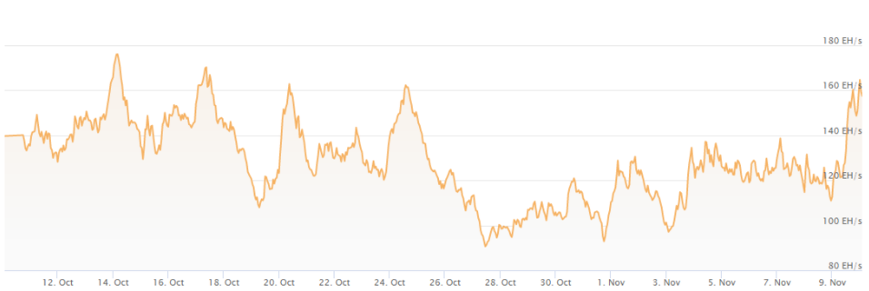 Ekim ayında Sichuan’dan gelen gözle görülür göçün ardından artan karlardan memnun olan madencilerin yukarı yönlü bir hash gücü ayarlamasının ardından bu memnuniyetlerinin uzun sürmeyeceği düşünülüyor. Ekim ayında yaşanan %16’lık negatif ayarlamanın ardından önümüzdeki günlerde yaşanabilecek yukarı yönlü ayarlamanın da benzer ölçüde büyük olabileceği ifade ediliyor.