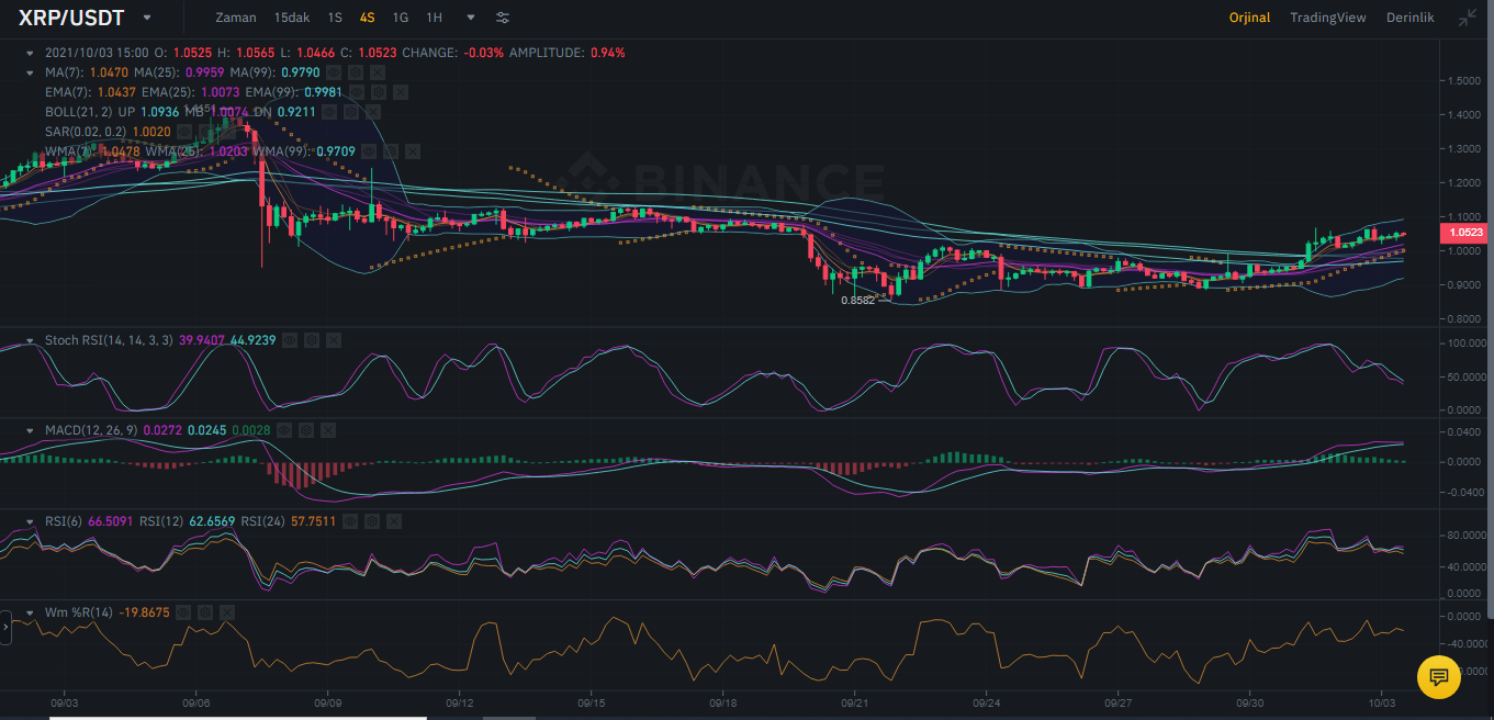 Mevcut fiyat boğaların hakimiyetini gösteriyor yarın potansiyel yeşil bir pazartesi geçirirsek XRP 1,24 seviyelerini yeniden görebilir. Ripple (XRP) için ATH tazelemesi şimdilik mümkün görünmüyor. XRP yatırımcılarının kaderi SEC’in elinde ve SEC davayı kaybetmemek için elinden geleni yapacak. Uzman incelemesinin 15 Kasım tarihine kadar tamamlanması gerekiyor. Süre zarfından teknik verilerden ziyade temelde haber takibi daha yararlı olabilir.