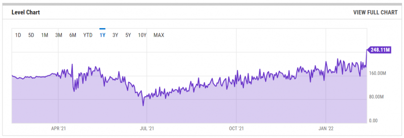 Aşağıdaki grafikte de göreceğiniz üzere ağ hash oranı sadece bir günde %31,69 artarak 188,40 EH/s’den 248,11 EH/s’ye yükseldi. Ayrıca, Bitcoin ağının hash oranı seviyeleri geçen yıla göre %54,33 arttı.