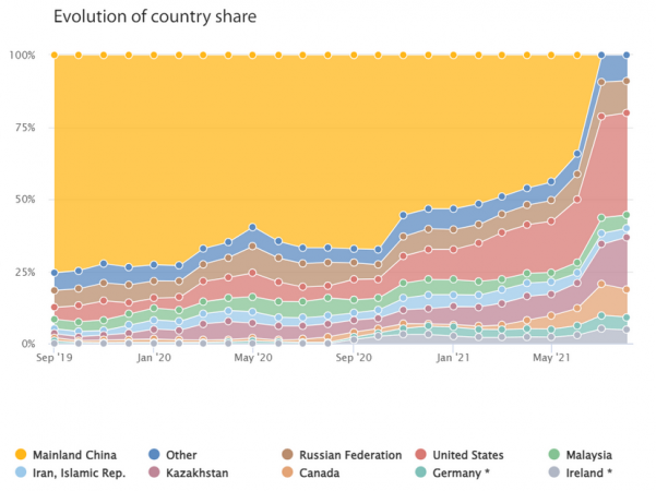 Daha önce, Çin’in kripto madenciliği ve yatırıma yönelik kapsamlı yasağı, Asya ülkesi Haziran 2021’e kadar toplam Bitcoin madenciliği hash oranının %34,25’ine katkıda bulunduğundan, Bitcoin ağının güvenliği konusunda endişelere yol açmıştı. Madenciler sonunda diğer kripto dostu ülkelere sığınırken, Bitcoin ağı keskin bir iyileşme gördü. Şu anda, ABD’de ikamet eden madenciler, Bitcoin ağının küresel hash oranı açısından en yüksek katkıyı %35,4 ile sağlıyor.