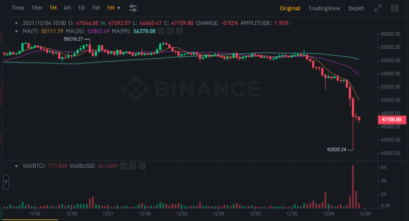 Bitcoin bugün hızlı bir şekilde 47.000 dolarlık seviyenin altına gerileyerek 42.000 dolara iğne attı. Bu geri çekilme lider kripto para biriminin 24 saat içinde %20’nin üzerinde değer kaybetmesine sebep oldu.