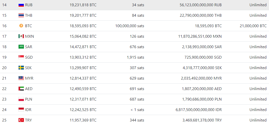 Ortaya çıkan son verilere göre Bitcoin, Tayland bahtı ve Rus rublesini bir süreliğine geride bıraktı. Bitcoin’in bir sonraki hamlesinde İsviçre frangına ulaşmak için yaklaşık olarak yüzde 70 daha fazla yükselmesi gerekiyor. BTC bu sabah 42.000 doları gördükten sonra piyasa değeri 772 milyar dolara kadar yükseldi ve bu sayede Tayland bahtı ve Rus rublesi geride kaldı.
