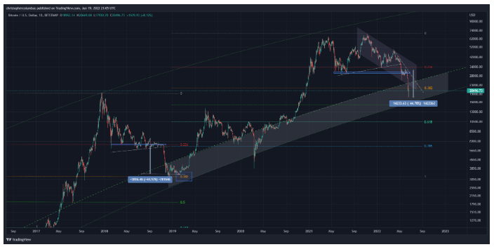 Dave the Wave’in grafiğine bakıldığında, Bitcoin’in 30.000 dolardan 2022’nin en düşük seviyesi olan 17.760 dolara keskin geri çekilmesinin büyüklüğü, lider kripto paranın 6.000 dolardan 3.000 dolara düştüğü ve sonunda dip seviyeyi gördüğü 2018 satış olayıyla karşılaştırılabilir görünüyor. Her iki durumda da BTC, değerinin %44’ünden fazlasını kaybetti.
