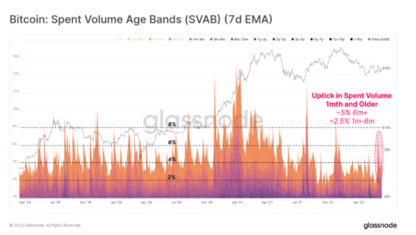 Geçen hafta, uzun vadeli yatırımları olan Bitcoin sahiplerinin bazılarının kar aldığı ve risklerini azalttığı görüldü ama hala uzun vadeli yatırım stratejisinin baskın olduğu görülüyor. Blockchain analitik firması Glassnode’un verilerine göre makroekonomik durum, uzun vadeli yatırım yapan bazı yatırımcıların satış yapmasına sebep oldu. Geçen hafta altı aydan daha uzun süredir yatırım yapan kişilerin satışları toplam hacmin %5’ini oluşturdu.