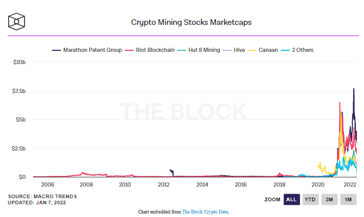 The Block Research’ün verilerine göre, Nevada merkezli Marathon Patent Group’un piyasa değeri Kasım başında 7,65 milyar dolardan bugün yaklaşık 3 milyar dolara düştü. Colorado’nun Riot Blockchain’i 4,25 milyar dolardan 2,05 milyar dolara düştü. Toronto merkezli Hut 8 madenciliğin ise değeri 2,33 milyar dolardan 1,19 milyar dolara geriledi. Bunlara ek olarak Hive, Argo Blockchain ve Canaan’ın hisse fiyatları da diğerleri kadar olmasa da keskin geri çekilmelere ev sahipliği yaptı.