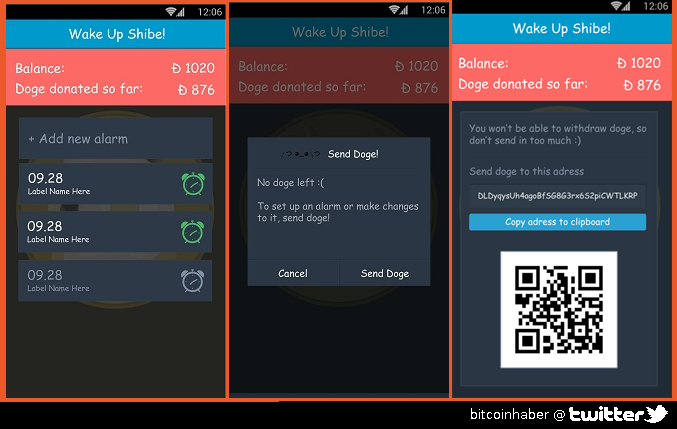 Winner application selected by the judges is “Wake-up Shibe!“, an alarm clock app for mobile phones eating your doge coins in case you insist on snoozing the alarm to sleep a few more minutes. You need to charge your doge coin wallet before you go to bed. WOW.