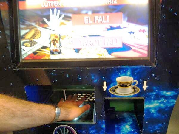 Second runner up is a fortune telling machine that scans your palm and predicts your future. The kiosk accepts bitcoin payment in addition to normal coins. Its developers plan to add coin to bitcoin exchange function.
