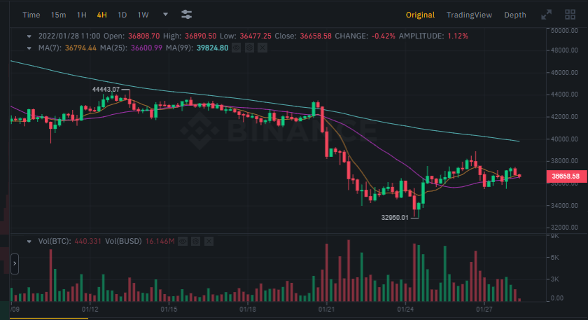 Cointelegraph Markets Pro ve TradingView’den elde edilen verilere göre bugün 37.500 dolar Bitcoin için güçlü bir direnç olarak kendisini kanıtladı. Bunun yanında BTC/USD paritesinin FED açıklamalarından sonra 35.500 dolarlık seviyelerden bir toparlanma yapması da dikkatleri çekiyor.