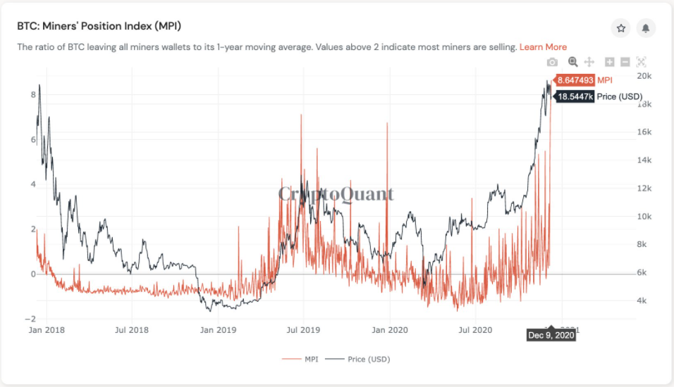 CryptoQuant CEO’su Ki Young Ju‘ya göre, madenciler 10 Aralık’ta çok fazla miktarda Bitcoin sattılar. CEO her ne kadar Ocak ayına kadar BTC’nin fiyatı konusunda iyimser olsa da bunun öngörülebilir gelecekte potansiyel olarak endişe verici bir eğilim olduğunu açıkladı.