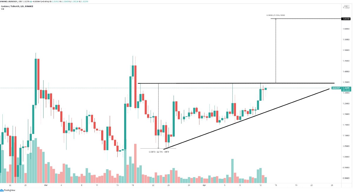 Cardano (ADA) fiyatı, 12 saatlik grafik verilerine göre yükselen bir fiyat kanalı içerisinde işlem görüyor. Tecrübeli analistlere göre, 1.35 doların üzerindeki bir kırılma popüler kripto para biriminin tüm zamanların en yüksek seviyesini görmesini sağlayabilir. ADA fiyatı hali hazırda 1.37 dolar seviyelerinden işlem görüyor. Bu bağlamda, ADA boğaları oldukça kritik bir seviyeyi test ediyor.