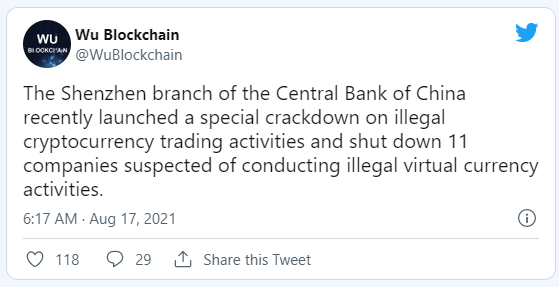 Çinli haber kaynağı Cnstock.com Salı günü yaptığı açıklamada, Çin merkez bankasının Shenzhen’deki şubesinin yasadışı kripto para işlemlerini engellemek için adım attığını dile getirdi. Rapora göre, yeni kampanyanın bir parçası olarak PBOC, yasadışı dijital para birimi faaliyetleri yürüttüğünden şüphelenilen 11 şirkete düzenlemeler getirdi.