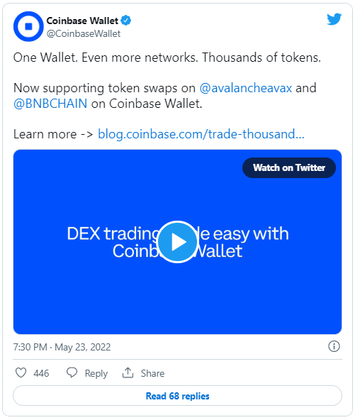 BNB Chain (BNB) ve Avalanche‘a (AVAX) eklenen işlevsellik, Ethereum (ETH) ve Polygon (MATIC) dahil olmak üzere desteklenen toplam ağ sayısını dörde çıkarıyor. On-chain olarak işlem yapmak isteyen cüzdan kullanıcıları, Coinbase’in kendi uygulama içi merkezi olmayan borsasını (DEX) dört ağda kullanabilir. Token köprüleme ise henüz mevcut değil.