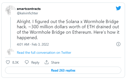 Wormhole yaptığı bir Twitter paylaşımı ile durumu kabul ettiklerini açıkladı. Wormhole geliştiricileri, bilgisayar korsanı ile onlara 10 milyon dolarlık bir ödül sunan bir whitehat anlaşması yaptılar.