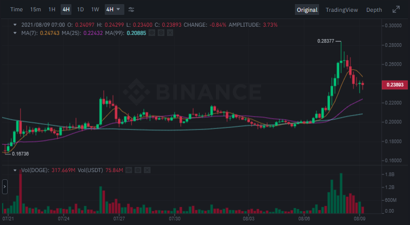 Cumartesi günü yaşanan yükselişte 0,28 dolara kadar çıkan Dogecoin, Pazar günkü düşüşle birlikte 0,25 dolarlık önemli desteğin altına geriledi. Bununla birlikte son zamanlarda yaşanan alım baskısı ile DOGE fiyatında artış bekleyen analist sayısı da artıyor gibi görünüyor.