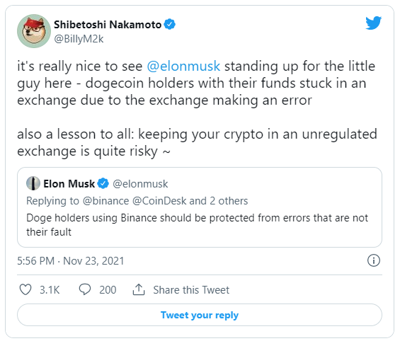 Ancak Dogecoin yaratıcısı Billy Markus, DOGE yatırımcılarının güçlü bir müttefiki olmasından memnun. Buna rağmen, tartışmalara hızlı bir şekilde “Düzenlenmiş ve düzenlenmemiş borsalar arasındaki fark.” konulu bir gönderi ile dahil oldu.