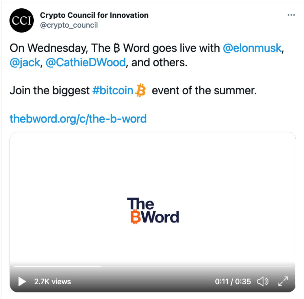 Geçtiğimiz ay Kripto İnovasyon Konseyi, Bitcoin özelinde “The B Word” adlı bir konferans düzenleyeceğini duyurdu. Elon Musk ve birçok milyarder ismin katılacağı konferansa az bir süre kaldı.