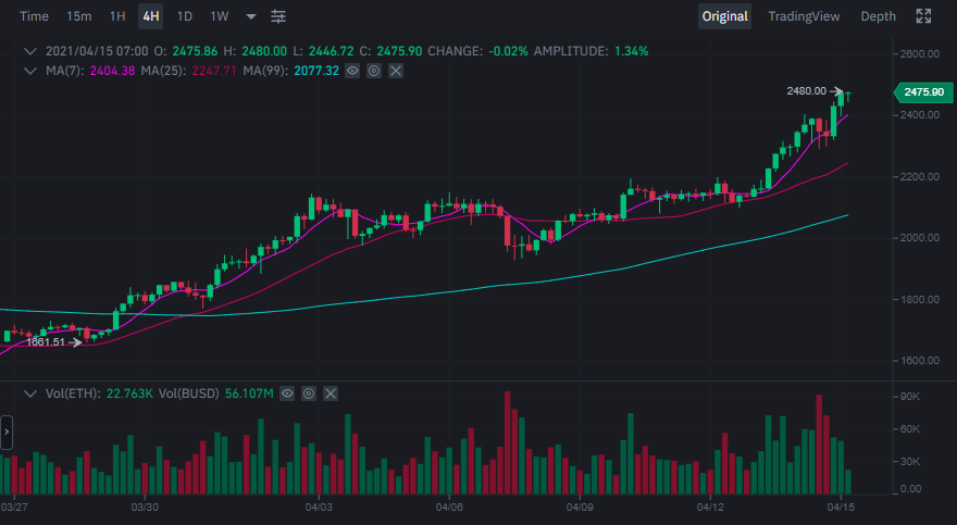 Yazının yayına hazırlandığı sırada 2.475 dolardan işlem gören Ethereum’un rekorunu kısa süre önce 2.480 dolar olarak belirlediği ifade edilebilir. ETH’un Mart ayı sonunda 1.660 dolar bandında işlem gördüğü göz önünde bulundurulduğunda aslında en büyük altcoin biriminin iki hafta gibi kısa bir süre içinde oldukça iyi bir performans sergilediği anlaşılıyor.