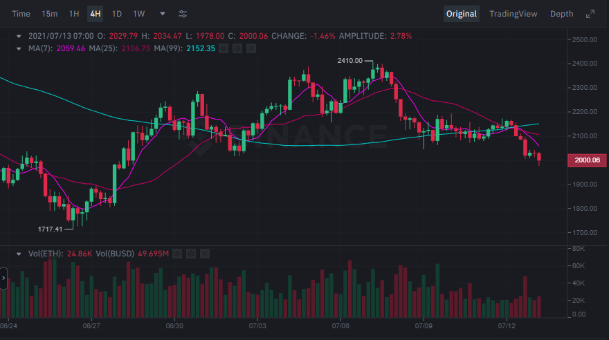 Piyasa hacmi bakımından en büyük ikinci kripto para birimi olan Ethereum’da 2.175 dolarlık direnç bölgesinde bir geri çekilme yaşandı. ETH düşüşe geçtikten sonra 2.100 dolar seviyesinde bulunan desteği ve 100 saatlik basit hareketli ortalamayı da aşağı yönlü kırdı.
