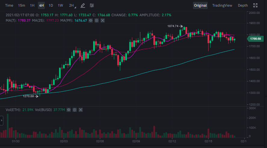 Ethereum’un fiyatı, bu yılın başlarında önceki tüm zamanların en yüksek seviyesini kırdı ve bir düzeltmeye marcu kalmadan önce bu yıl 1.875 doların biraz üzerinde yeni bir tüm zamanların en yüksek seviyesine ulaştı. CryptoCompare verilerine göre ETH, diğer kripto varlıkların çoğunun fiyatları ile birlikte düştükten sonra şu anda 1.700 dolar ile 1800 dolar aralığında işlem görüyor.
