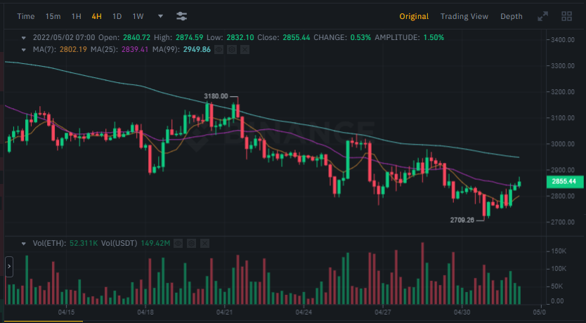 Grafiklere göre Ethereum, 2.850 dolarlık pivot seviyesinin altında bir düşüş yolu izledi. ETH, 2.800 dolarlık destek seviyesinin ve 100 saatlik basit hareketli ortalamanın altında da işlem gördü ve bu endişelerin oluşmasına sebep oldu.