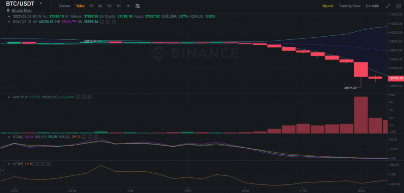 Nitekim öyle de oldu, 16:15 itibariyle 15 dakikalık mumların tamamını kırmızı yakan Bitcoin nihayet 36.500 dolara kadar gevşedi. Yazı hazırlandığı sırada ise 37.100 doların üzerinde tutunmaya çalışıyor. Dünyanın ilk spot tabanlı Bitcoin borsasında işlem gören fonu Purpose Bitcoin ETF‘ye girişleri analiz eden analist Jan Wuestenfeld, 4 Mayıs’ta yeni bir rekor kırıldığını söyledi.