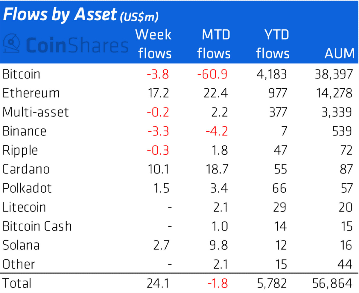 Bunun yanı sıra altcoin’leri çevreleyen yükseliş momentumuna ile birlikte Bitcoin ürünlerinin dönem için 3.8 milyon dolar kayıpla çıkışların devam ettiği rapor edildi. Coinshares, kurumsal valrık yöneticilerinin şu anda 56.8 milyar dolarlık bir AUM’u temsil ettiğini tahmin ediyor.