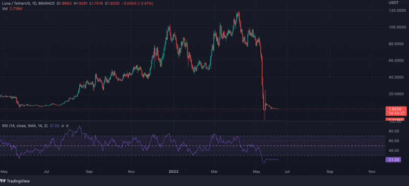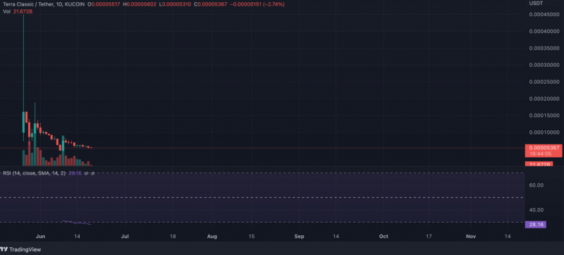 LUNA ve LUNC için RSI aşırı satış bölgesinde ve yatırımcılar Do Kwon’a güvenemediği için yeterli talep oluşmuyor.