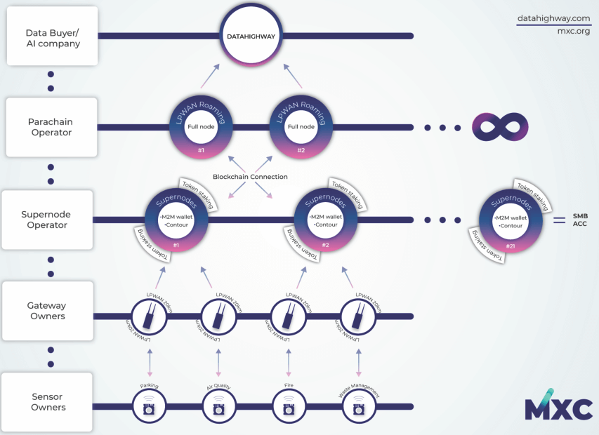 MXC Veri Ekonomisi, MXC ekosisteminin her bir öğesini birbirine bağlar. Temelinde, tüm dünyadan kablosuz olarak veri toplayan sensör sahipleri vardır.