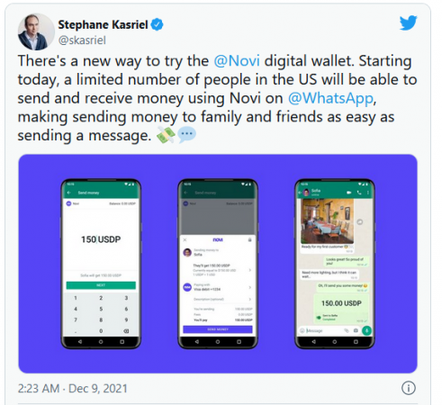 NOVI başkanı Stephane Kasriel, seçilen bir grup insanın Whatsapp ödemesinin özelliklerini ve hizmetlerini test ettiği pilot programın yaklaşık altı haftadır devam ettiğini Twitter’dan açıkladı. Yani ABD bölgesindeki belirli müşteriler hali hazırda bu hizmetten yararlanabiliyor.