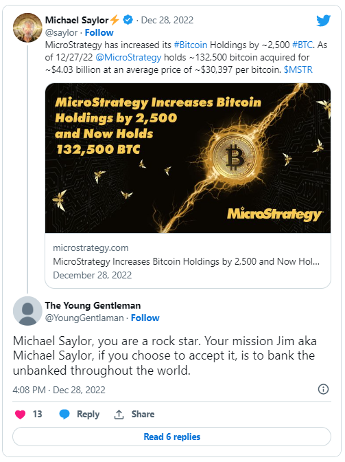Bir topluluk üyesi MicroStrategy başkanını överek, misyonunu bankasız toplumlara erişmek olan bir “rock yıldızı” olarak nitelendirdi. Diğerleri ise yeni gelişmeyi kutlayarak kendilerinin de katılacaklarına ve daha fazla Bitcoin satın alacaklarına dair söz verdi.