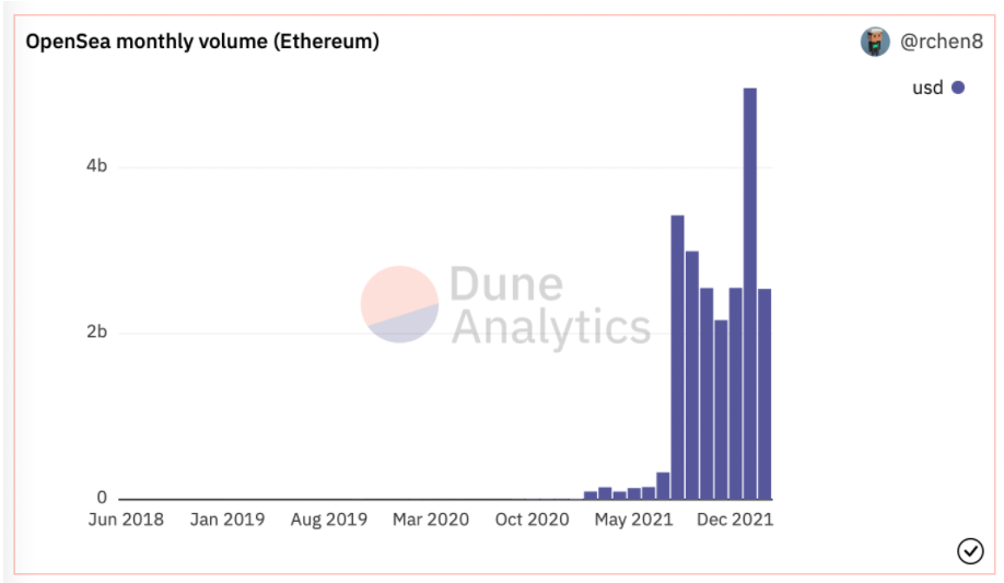 OpenSea’nin Şubat işlem hacminin Ocak ayının işlem hacmini geçip geçmeyeceğini kesin olarak söylemek hala mümkün değil. Yazının yayına hazırlandığı sırada 2.5 milyar dolar olan işlem hacminin Ocak ayının işlem hacmi olan 4.9 milyar doların hemen hemen yarısında olduğu görülüyor. Dolayısıyla kullanıcılar OpenSea’de Ocak ayında oluşan işlem hacminin sürdürülebilir olup olmadığı sorusunu gündeme taşıyor.