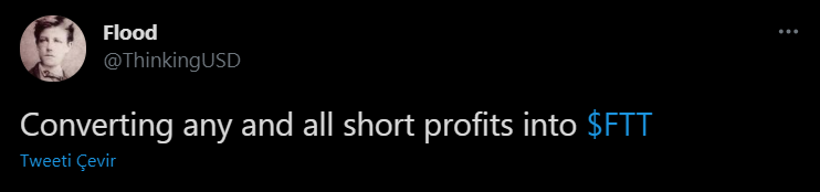 Flood tüm altcoin seçimleri arasında özellikle FTT’ye önem verdiğini ve her fırsatta yeni alım yaptığını ifade ediyor. FTT’nin önümüdeki günlerde çok iyi performans sergileyeceğini düşündüğünü ifade eden analist, karlarının tümünü FTT’ye dönüştürdüğünü de belirtiyor.