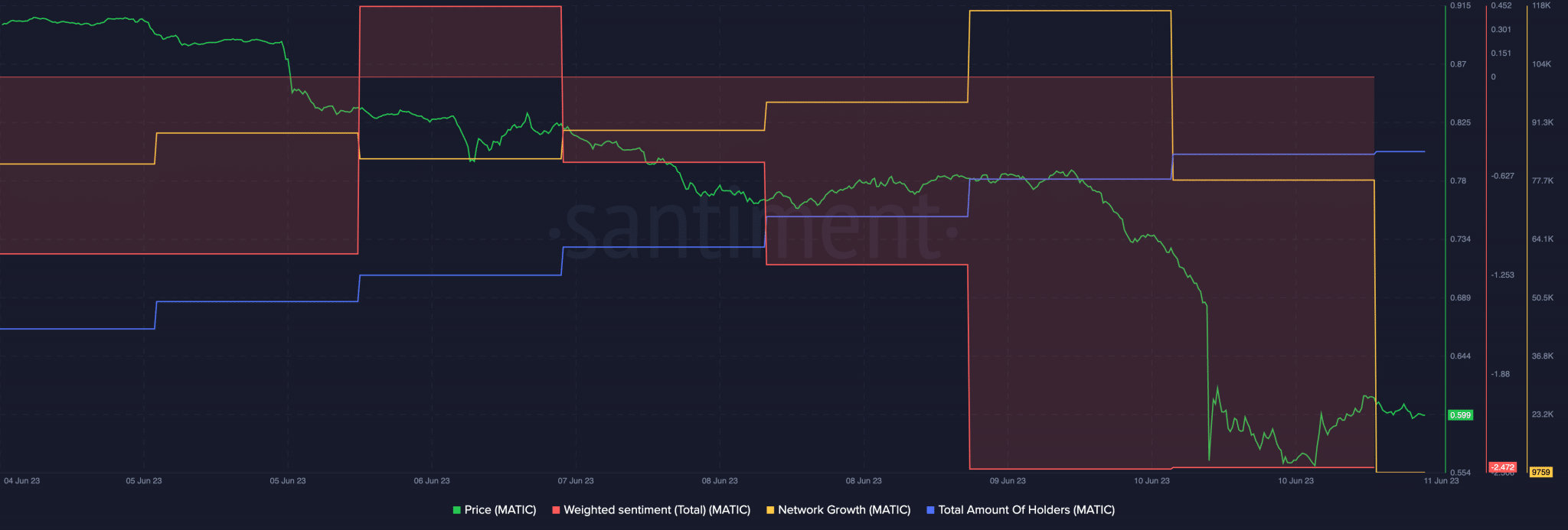 Şu an itibariyle, MATIC 0,601 dolardan işlem görüyor. Ağ büyümesi son aylarda önemli ölçüde azaldı ve bu, yeni adreslerin ilgi eksikliğini gösteriyor. Ancak düşen fiyatlara rağmen toplam MATIC sahibi sayısı artmaya devam etti. Bu nedenle, basın zamanında, mevcut sahipler arasında MATIC’in dayanıklılığına potansiyel olarak katkıda bulunabilecek bir güven vardı.