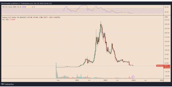 Solana, yılbaşından bugüne %97’ye yakın kayıpla 2022’nin en kötü performans gösteren kripto para birimlerinden biri olarak ortaya çıktı. Buna karşılık, toplam kripto para piyasası değeri aynı dönemde %65 düştü.