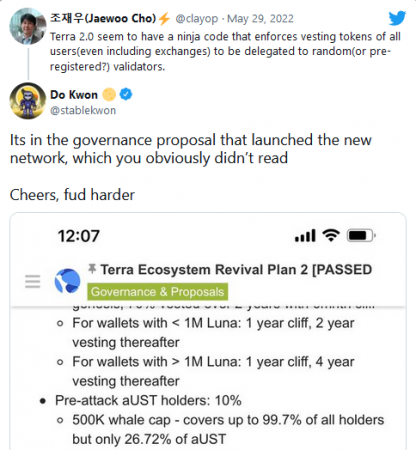 “Terra 2.0, tüm kullanıcıların (değişimler dahil) hakkediş tokenlerinin rastgele (veya önceden kayıtlı?) doğrulayıcılara devredilmesini zorunlu kılan bir ninja koduna sahip gibi görünüyor”.