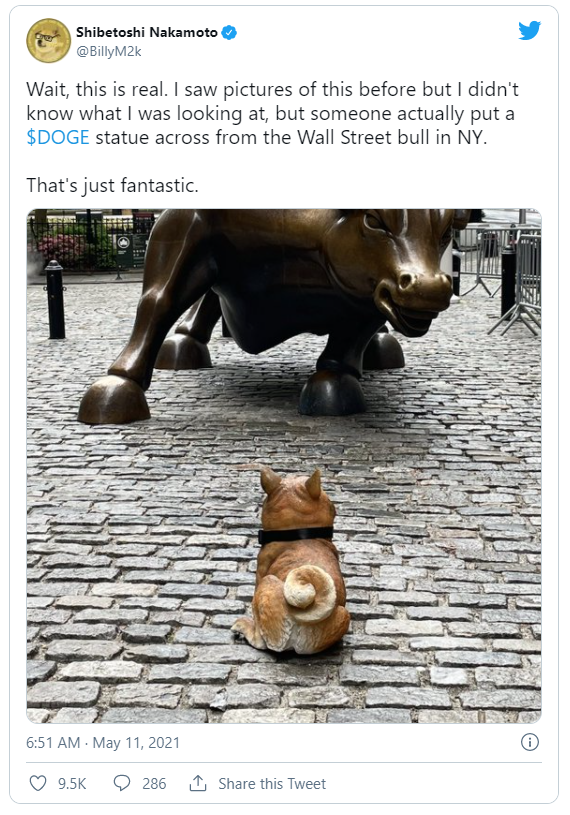 En popüler şaka coin’i olan Dogecoin’in (DOGE) ortak yaratıcısı Billy Markus, New York’un finans bölgesindeki ikonik “Charging Bull” heykelinin önüne yerleştirilen Shiba Inu maskotu hakkında Twitter üzerinden açıklamalar yaptı.
