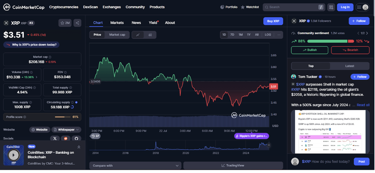 XRP fiyat tahmin modelleri, ProShares Ultra XRP ETF’i ve balina hareketliliğinin talebi güçlü tutmasıyla cesur kilometre taşlarına işaret ediyor. XRP, 3,40 ila 3,56 dolar aralığında dar bir bantta işlem görerek 3,55 dolara yakın seyrediyor. Bugünkü blokzincir aktivitelerinde yaklaşık 1,4 milyar dolarlık transfer kaydedildi, aktif cüzdan sayısı ise %50 arttı. Şimdi pek çok yatırımcı, 2028’e kadar 10 dolara ulaşma potansiyelini değerlendiriyor.